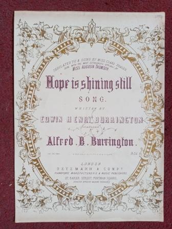 Hope is shining still. Song, written by Edwin Henry Burrington. ['Rain upon the valley'. For the voice and piano. Score]. |